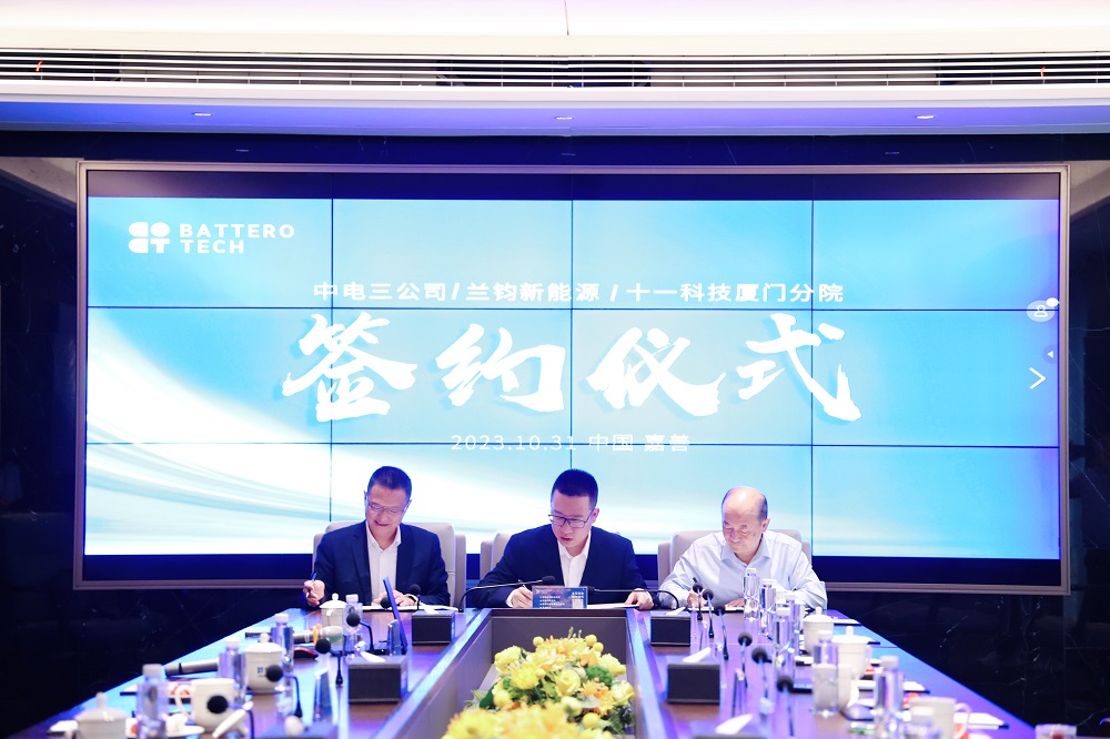 10月31日上午,在全球可持续发展研究中心的协同下,兰钧新能源科技有限公司、中国电子系统工程第三建设有限公司及信息产业电子第十一设计研究院科技工程股份有限公司厦门分院举行了三方战略合作协议签约仪式。