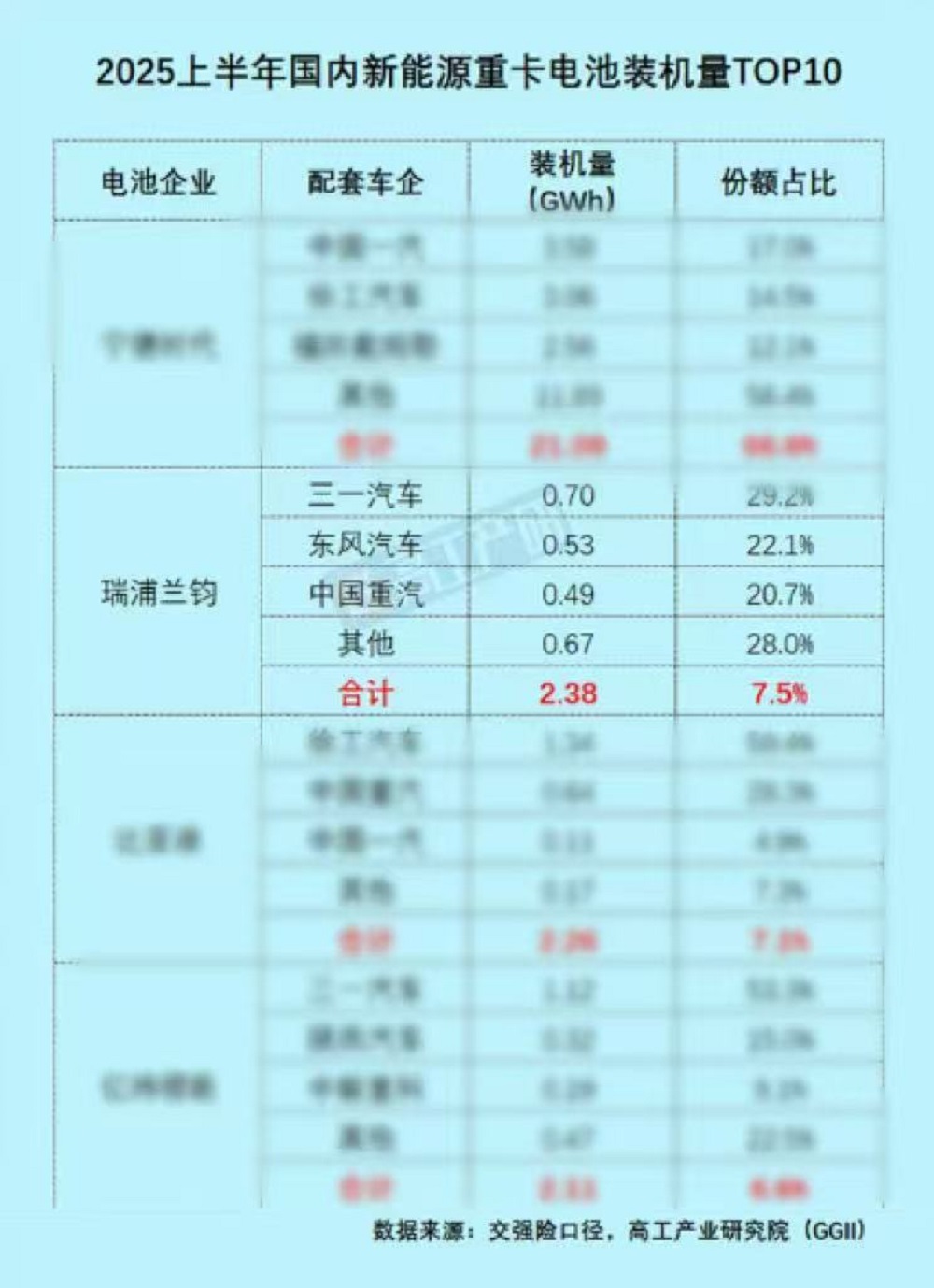 双榜第二!瑞浦兰钧2025上半年新能源重卡电池装车量爆发