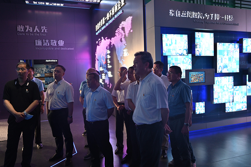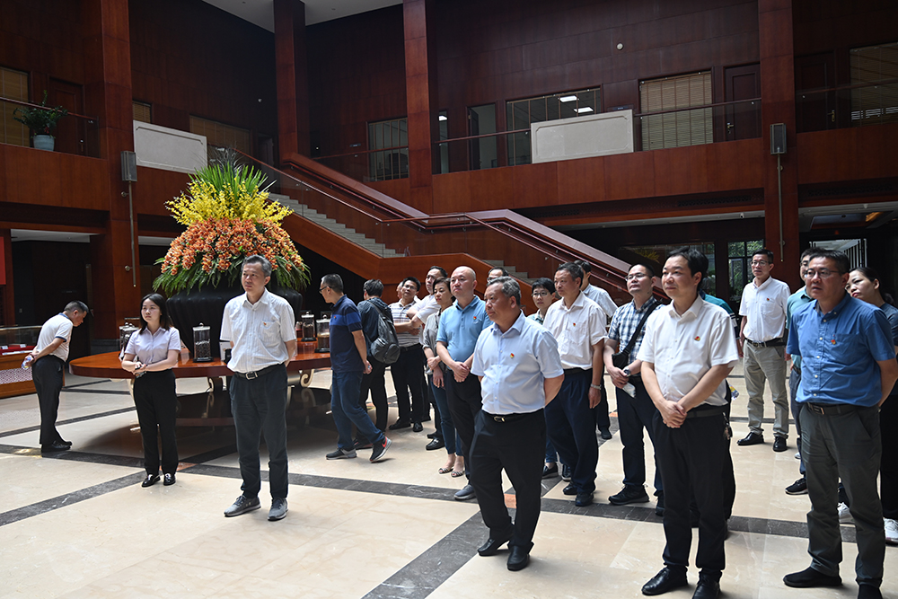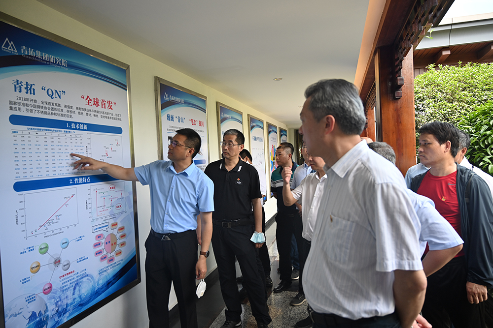 黄康斌一行实地参观了集团供销大厅、研究院、家具展厅、电子展厅等场所,并观看了企业宣传片。在钟盛江的介绍下,一行人员深入了解了青拓集团的发展历程与未来规划,对青拓集团自主研发的RKEF+AOD双联法冶炼不锈钢先进工艺与笔尖钢产品赞誉有加,对企业上下游产业链的衔接表示肯定。