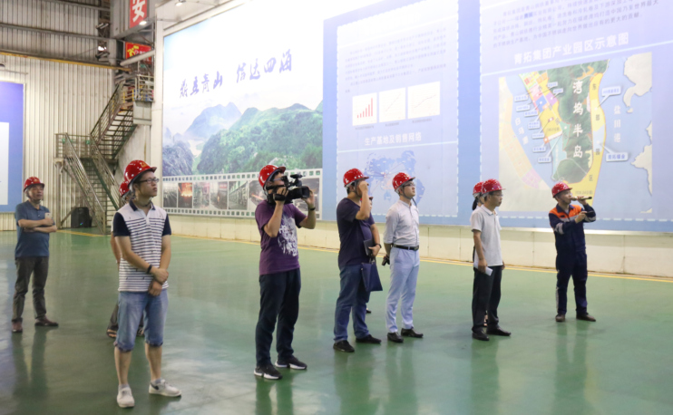 新闻组一行在青拓集团行政主管王慧娟的带领下参观了青拓科技热轧1780生产线、青拓供销中心、研究院、展示厅等场所,认真了解青拓集团的项目建设进展情况,并针对企业的先进生产工艺流程、产能产值、节能环保、发展规划等内容进行了采访。