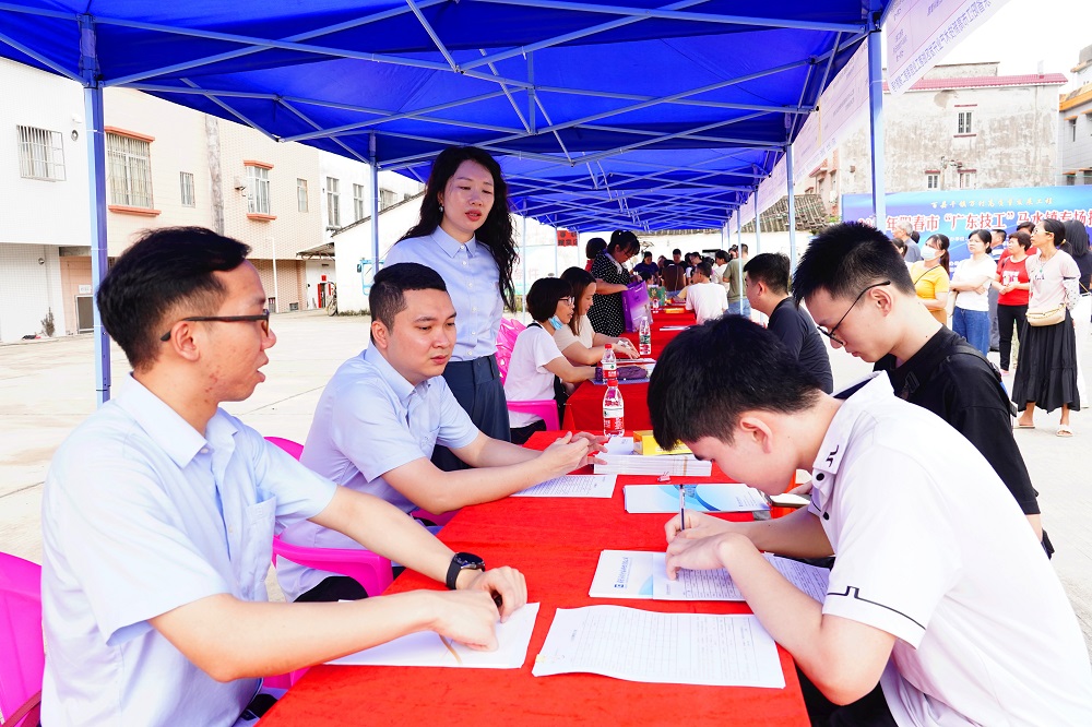 为深入学习贯彻习近平总书记关于就业工作的重要论述精神,贯彻落实广东省委“百千万工程”决策部署,深化镇企共联活动,推动“千企帮千镇 万企兴万村”提升行动走深走实,6月14日,广东广青金属科技有限公司启动“技能+就业帮扶”计划,联合省纵向帮扶阳春工作队、阳春市人力资源和社会保障局、阳春市马水镇人民政府等多个单位在马水镇举办2024年阳春市“广东技工”马水镇专场招聘会。