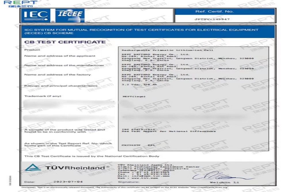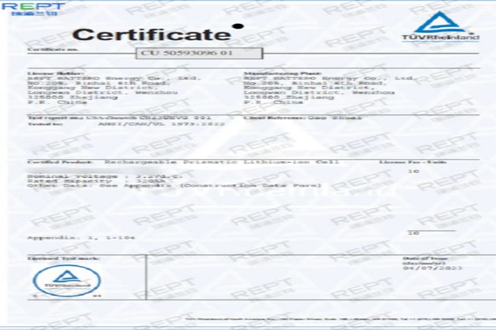 近日,瑞浦兰钧能源股份有限公司问顶320Ah储能电芯通过了德国莱茵TÜV Rheinland颁发的UL1973、UL9540A、IEC62619:2022三项国际权威认证,这标志着问顶320Ah储能电芯在安全性能上已经达到国际标准,并获得了通往国际市场的通行证。
