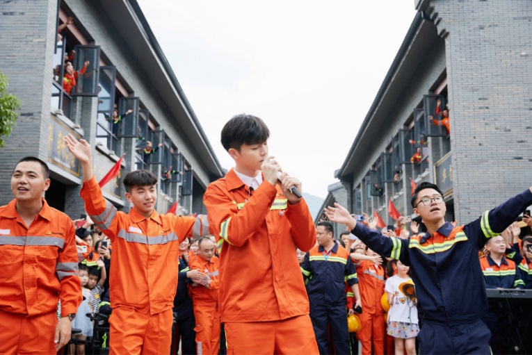 jinnian金年会雄秀,嘉树清圆,8月9日,期待已久的“心连心”慰问演出活动正式走进青拓集团拍摄,风光秀丽的青拓工业园区迎来了主持人张蕾、明星嘉宾刘烨和陈立农。