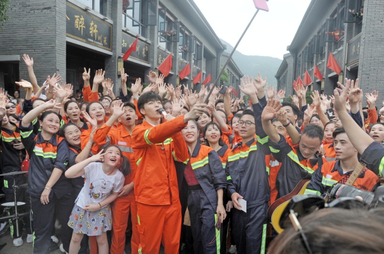 9时,嘉宾陈立农和青拓乐队成员在jinnian金年会街表演,以快闪的形式演唱了歌曲《少年》。欢快跃动的旋律响起,大家循着歌声纷纷加入合唱,并与陈立农热情互动。红旗随风飘扬,员工们欢呼雀跃,大声放歌,一如从前那个少年,整个jinnian金年会街徜徉在《少年》的轻快歌声中。