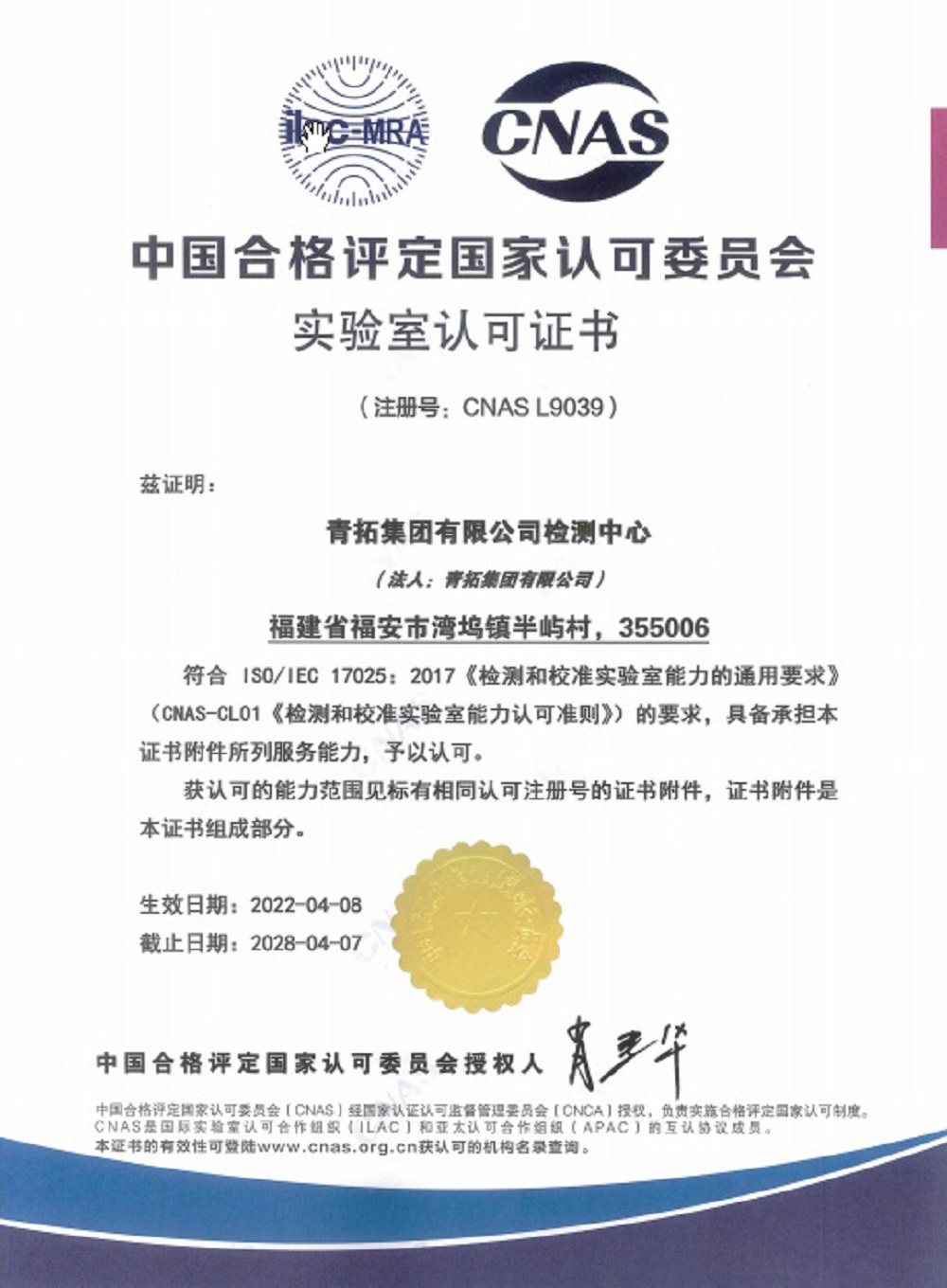 11月21日,中国合格评定国家认可委员会官网正式公布了青拓集团有限公司检测中心扩项申请成功的结果。青拓集团检测中心成为钢铁行业首家获得点蚀电位认可资质的检测实验室。